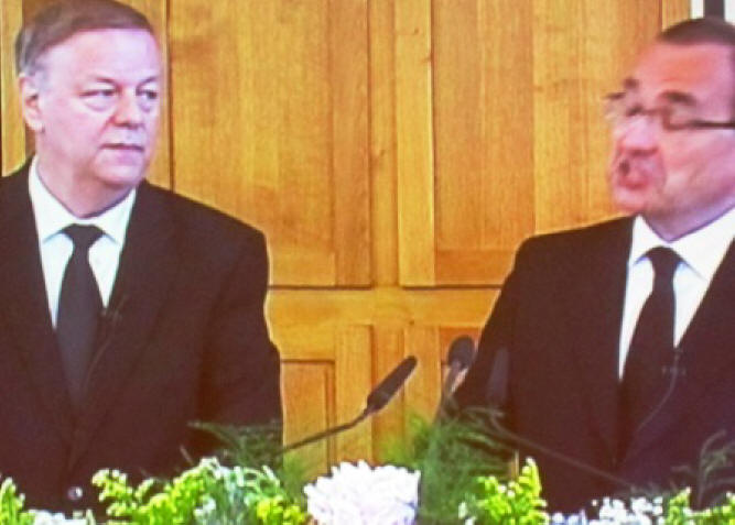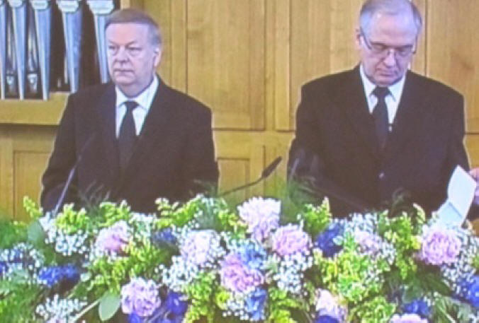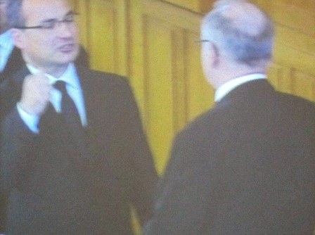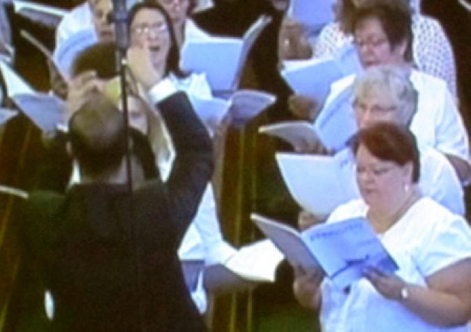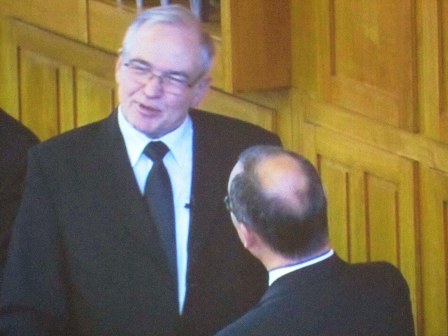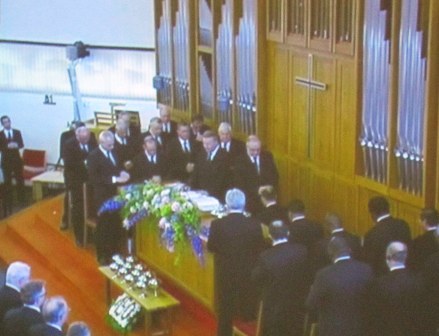 Onze excuses voor de belabberde kwaliteit van de foto's zij werden echter van het bekende scherm genomen, en ook nog eens van afstand. Maar het geeft toch wel een indruk van het geheel. In de komende tijd zullen we nog terug komen bij de Nieuwe Stamapostel Jean-Luc Schneider. Wij wensen Stamapostel Schneider een goede gezondheid, en een opmerkzame geest in de Heilige Geest (...) Verder wensen wij hem een geloofsweg die gestoeld is op de ordeningen zoals die daar door God zijn gesteld. ( De ordeningen Gods) Daar is moed voor nodig, maar nog veel meer…Een ‘’onbegrensd’’ Godsvertrouwen. Ik weet dat Stamapostel Scheider veel waarde hecht aan de Nieuw Apostolische catechismus, maar…Deze mag onder geen beding verworden tot de Nieuw Apostolische Bijbel! Zelf heb ik daar voor enige jaren al voor gewaarschuwd. En ook al schrijven zij een volgende druk op Bladgoud, voor het woord van God is de Heilige schrift gegeven. In het geloof gaat het ‘’’’slechts’’’’ of we deel willen uitmaken van dat éne lichaam van Christus. De Nieuw Apostolische Kerk behoord als zovele Christenen tot een verscheurd Lichaam dat op een wanstaltige wijze tracht te lijken op HET LICHAAM van Christus. Helaas sukkelen zij steeds verder in het moeras van eigen dunk, ja zelfs boven dat van Jezus Christus, zodat we moeten spreken van een Godslastering. Hoe mooi ‘’we’’ het ook verpakken. Redactie/B.M